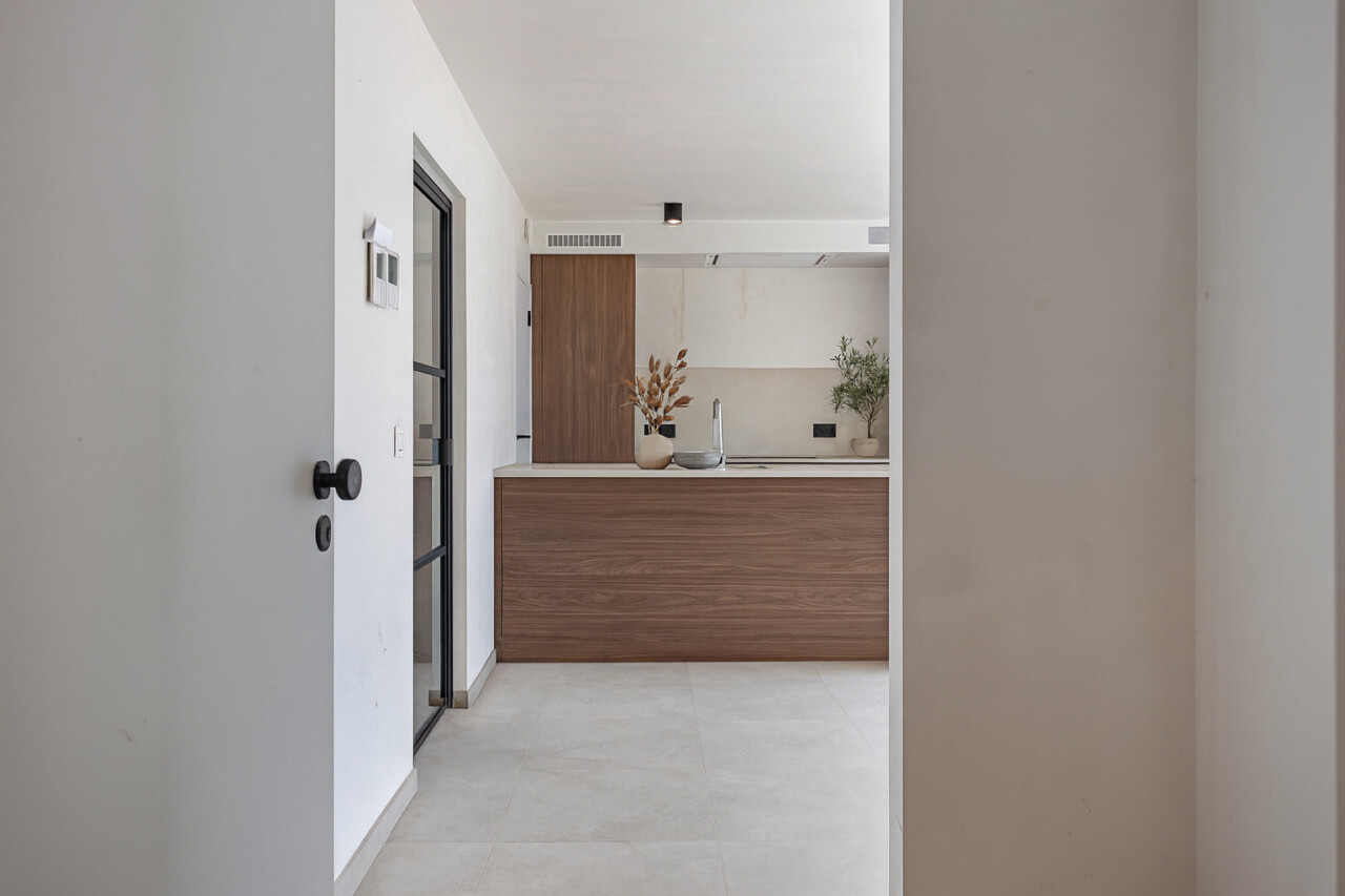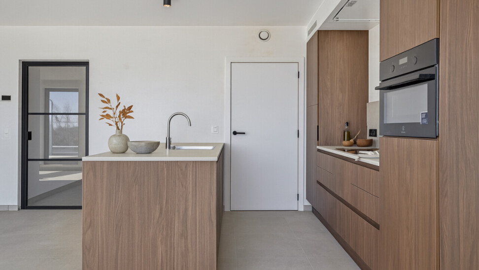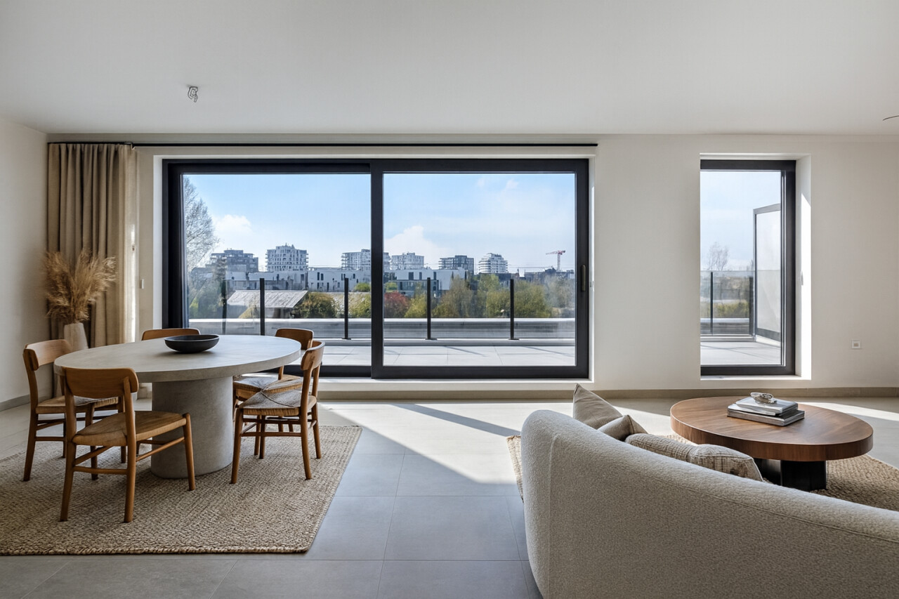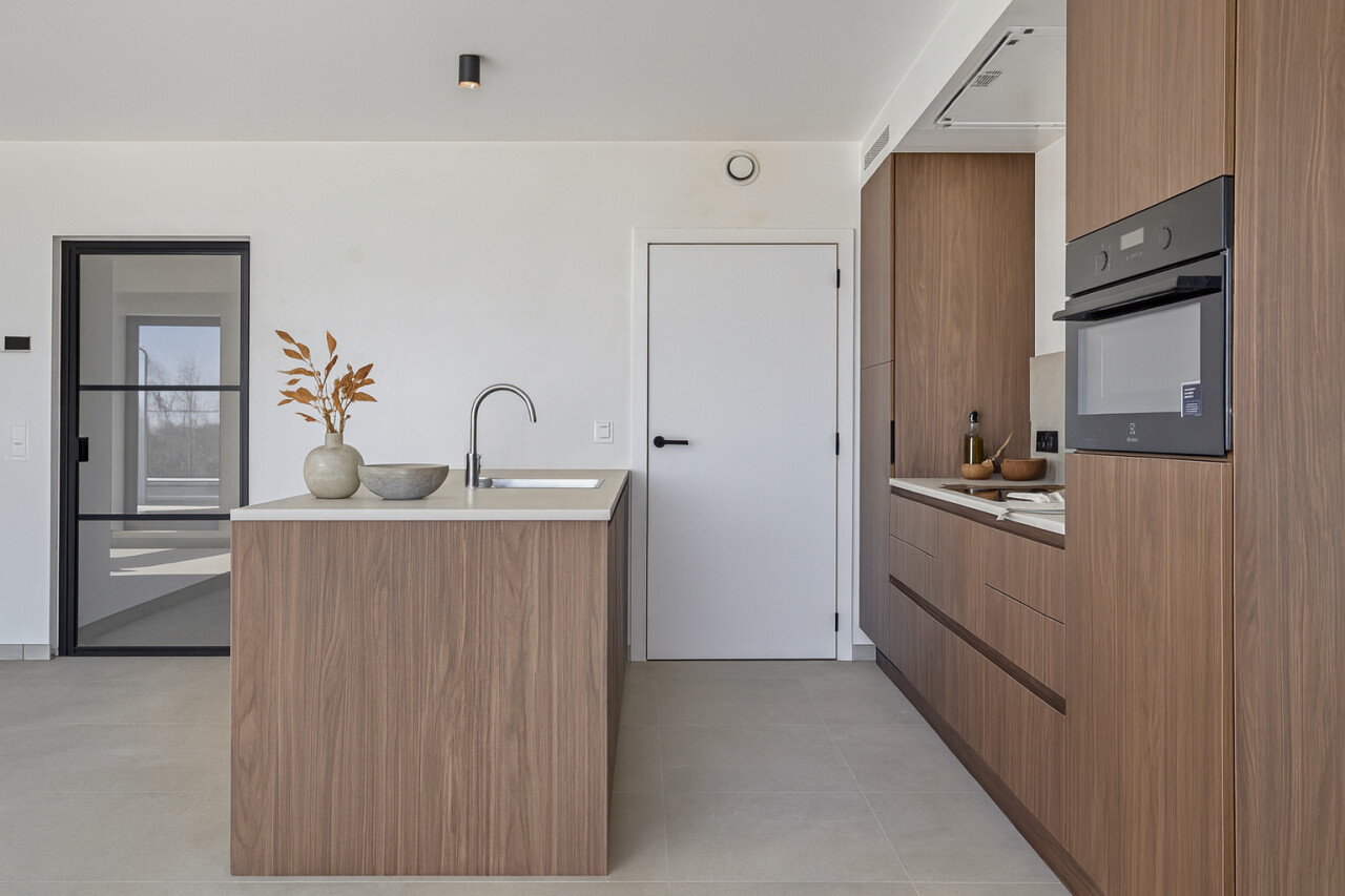 Leefruimte met open ingerichte keuken: 35m², rechtstreeks toegang tot terras - keuken voorzien van een inductiefornuis, Novy dampkap, combi-oven, vaatwasser en koelkast