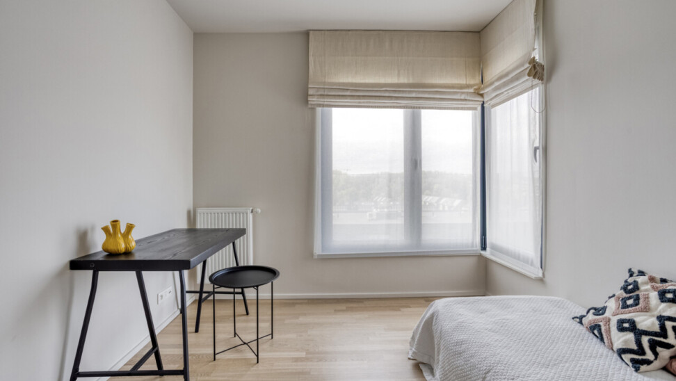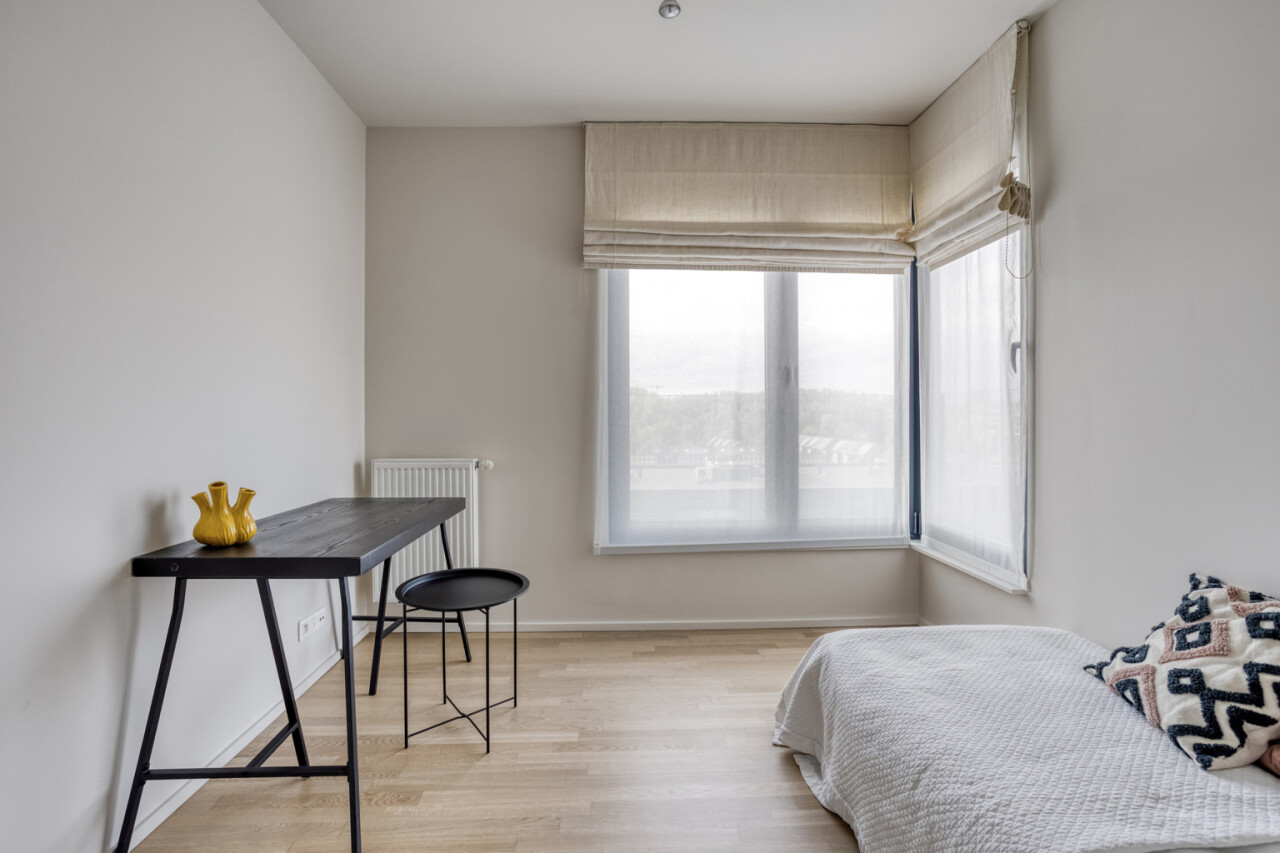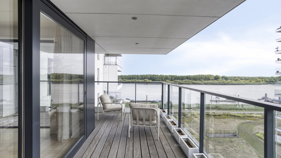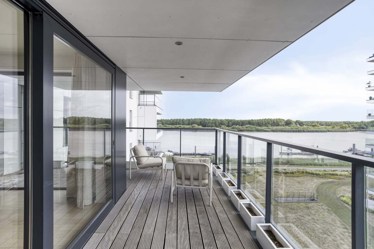 Het absolute pronkstuk van dit appartement is het royale terras, perfect georiënteerd en met een panoramisch uitzicht op het water — een zeldzame troef.