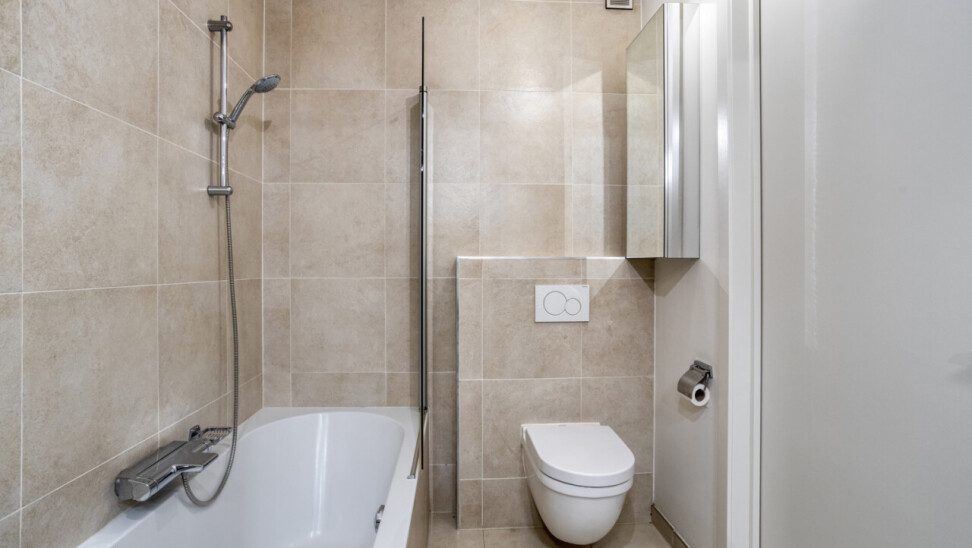 Er zijn twee volwaardige slaapkamers en een ruime badkamer, uitgerust met een ligbad, enkele lavabo met spiegelkast, en een praktische kolomkast.
