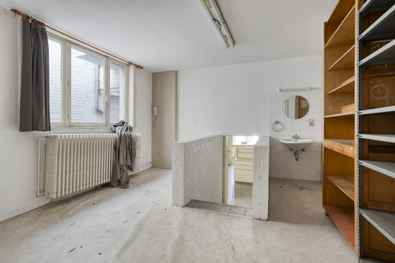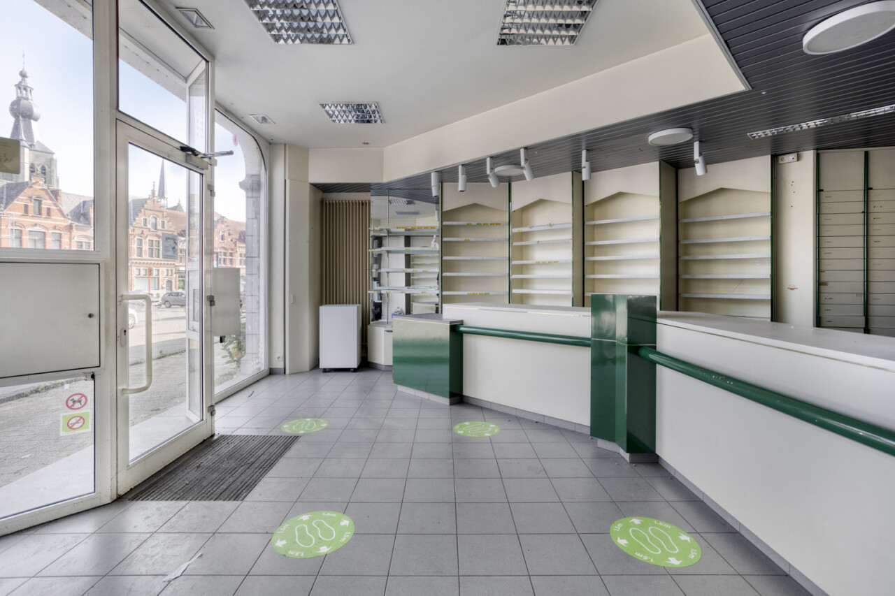 Dit handelspand op een perceel van 208m² bestaat uit een kelderverdieping + de de gelijkvloerse verdieping een commerciële ruimte, voorheen apotheek, kantoor, berging, toilet, doorgang, koer (deels overdekt) + op de eerste verdieping een overloop, toilet, keuken, woonkamer, gang, badkamer,2 kamers + op de tweede verdieping een overloop, 3 slaapkamer en zolderruimte. Het pand beschikt over een prachtige gevel die terecht werd opgenomen als bouwkundig erfgoed. Mits grondige renovatie bezorgt u dit pand haar uitstraling en statigheid terug van weleer! Samen met een TOP handelsligging is dit pand uniek in haar soort! Het pand rechts naast dit pand staat ook te koop en kan eventueel samen aangekocht worden.