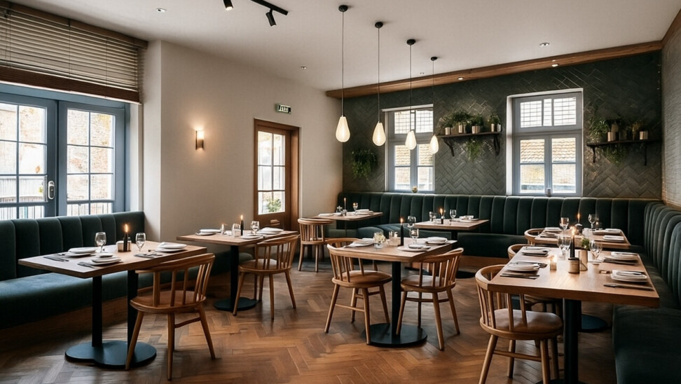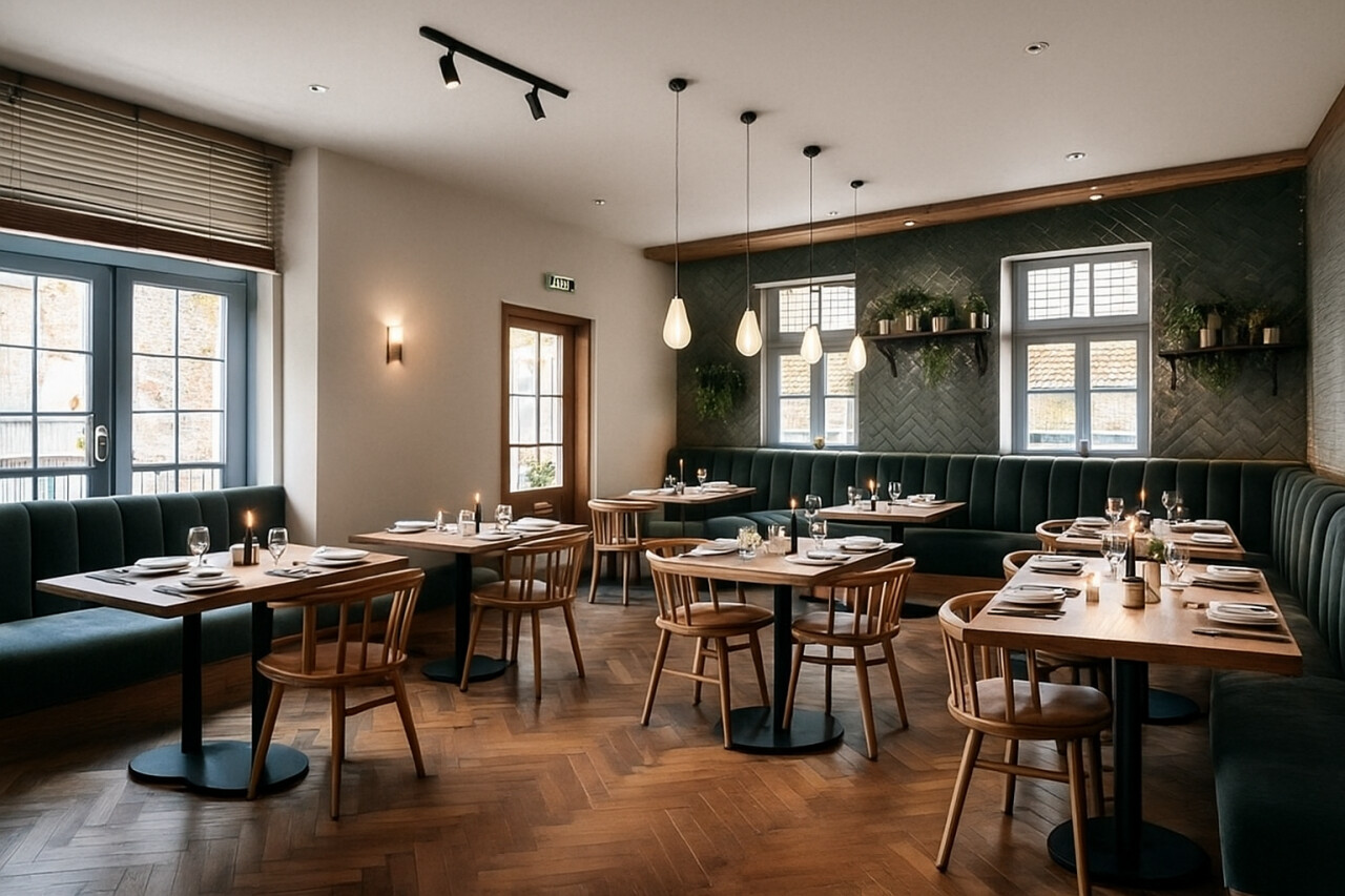 Een stijlvol restaurant met ruimte voor een warme, gastvrije sfeer.