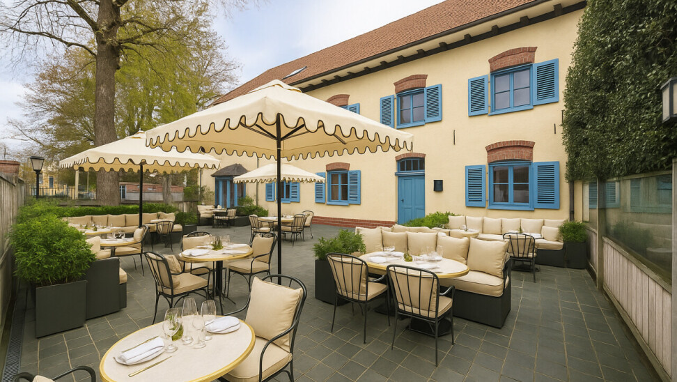 Een zeer ruim terras, perfect voor gezellige lunches, zonnige namiddagen en sfeervolle avonden.
