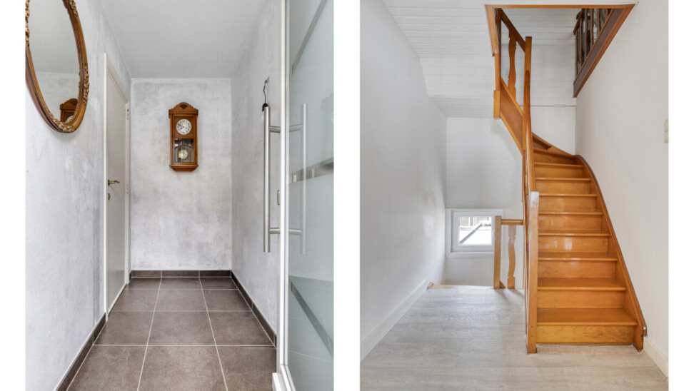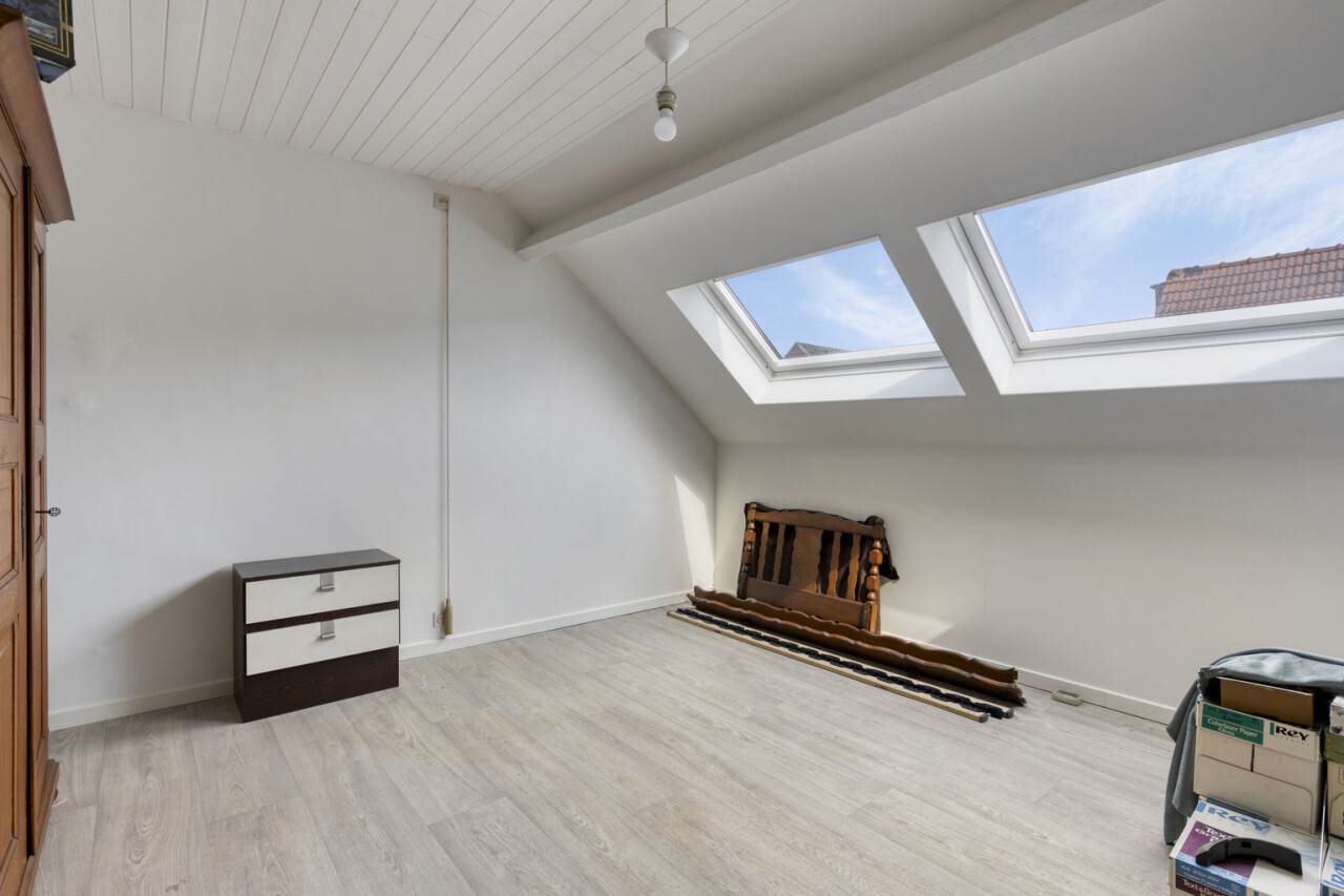 De zolderruimte heeft een oppervlakte van 13m² op plancher met hoogste punt op 1m60, toegankelijk via een vlieringtrap