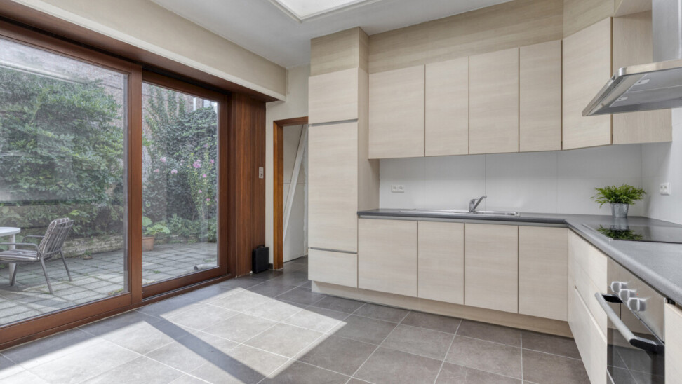 Keuken: 14,4m² voorzien van keukenkasten (2015), elektrisch keramisch kookfornuis, dampkap, oven, vaatwasser, koelkast met vriesvak, spoelbak met uitgietbak (Bossch toestellen) - deze ruimte is voorzien van een lichtkoepel