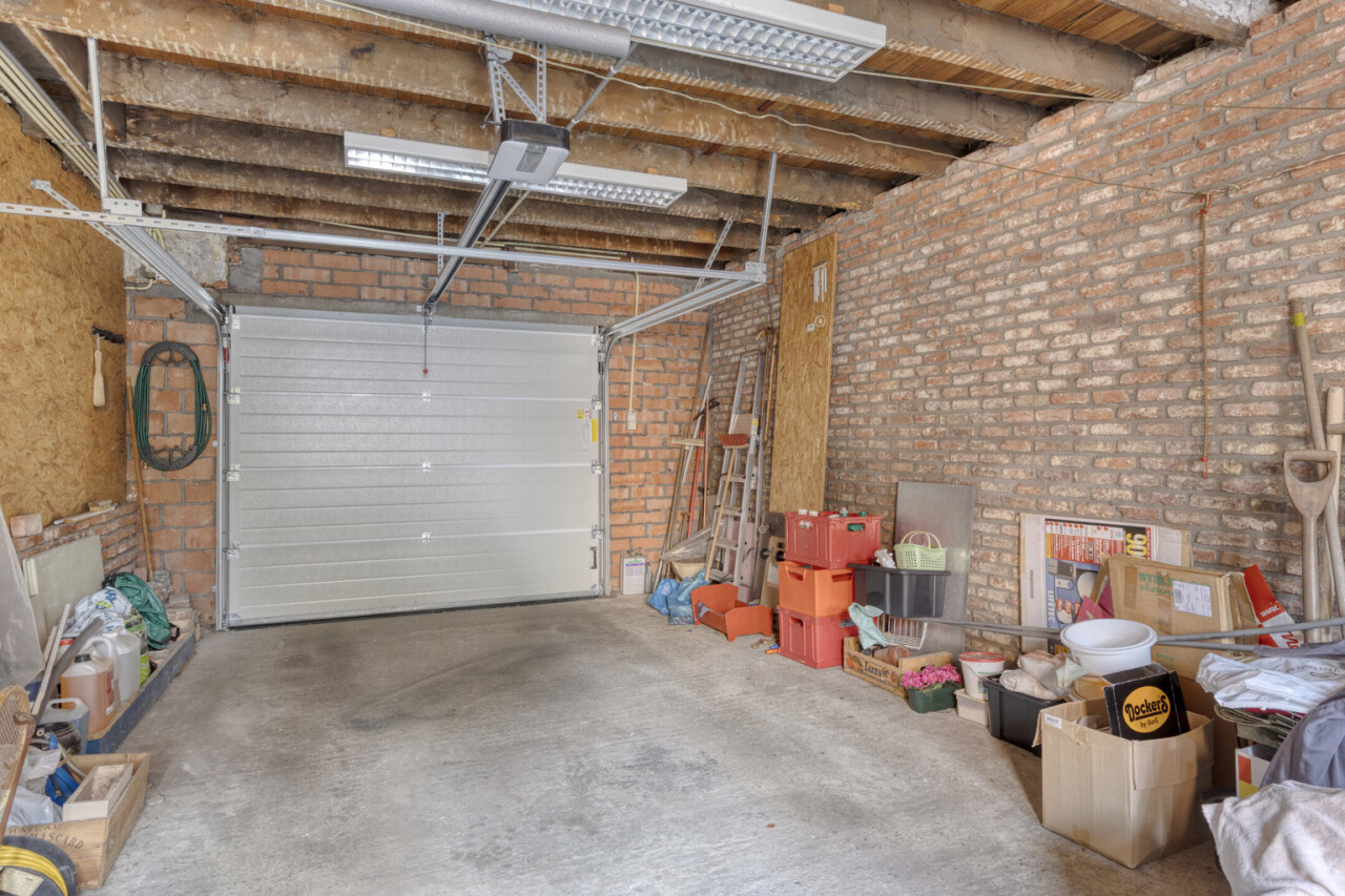 Garage: 28m²op tegelvloer, toegankelijk via een automatische sectionale garagepoort - deze ruimte is voorzien van een verdiep met dezelfde oppervlakte