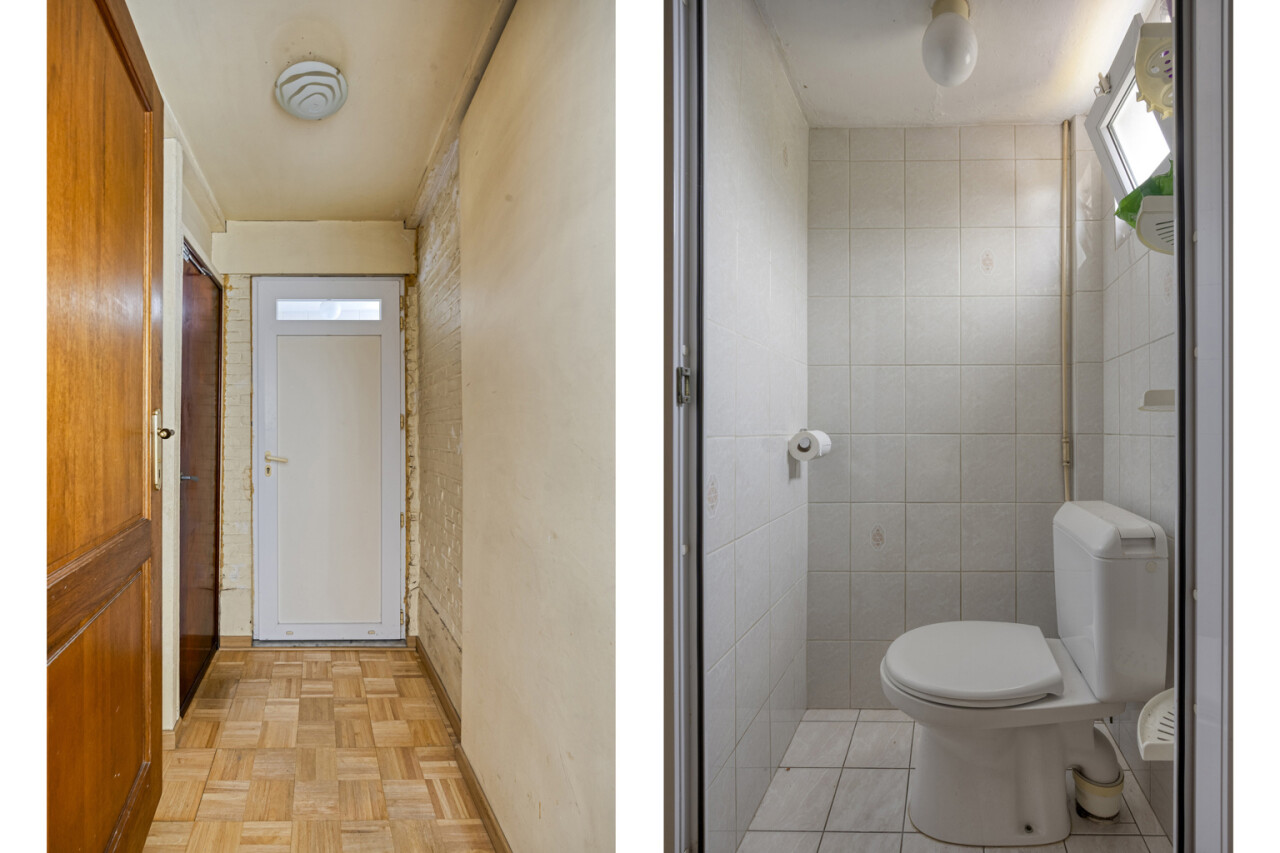 We betreden de woning via de ruime inkomhal, die toegang biedt tot de gezellige leefruimte met veel natuurlijke lichtinval. Aansluitend vinden we de ruime keuken, die uitnodigt tot het creëren van een warme gezinsplek. Op het gelijkvloers bevinden zich verder nog een praktische berging, een gastentoilet en een inpandige garage — handig voor wie houdt van orde en comfort.
