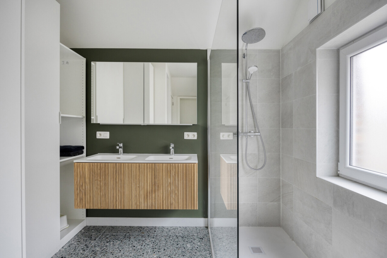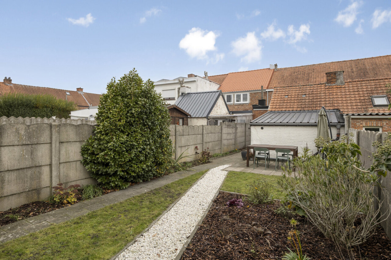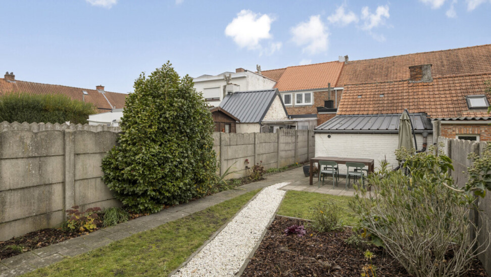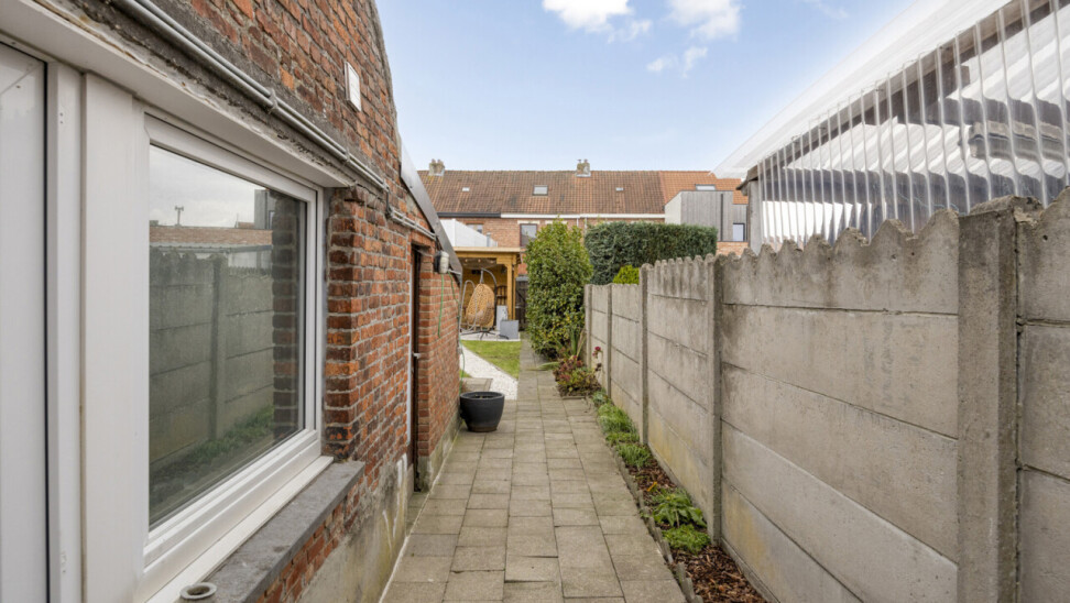 Een bijkomend voordeel is de achterliggende servitudeweg, waardoor de tuin ook langs achter toegankelijk is. Zo hoef je nooit met fietsen of materiaal door de woning, uiterst praktisch!