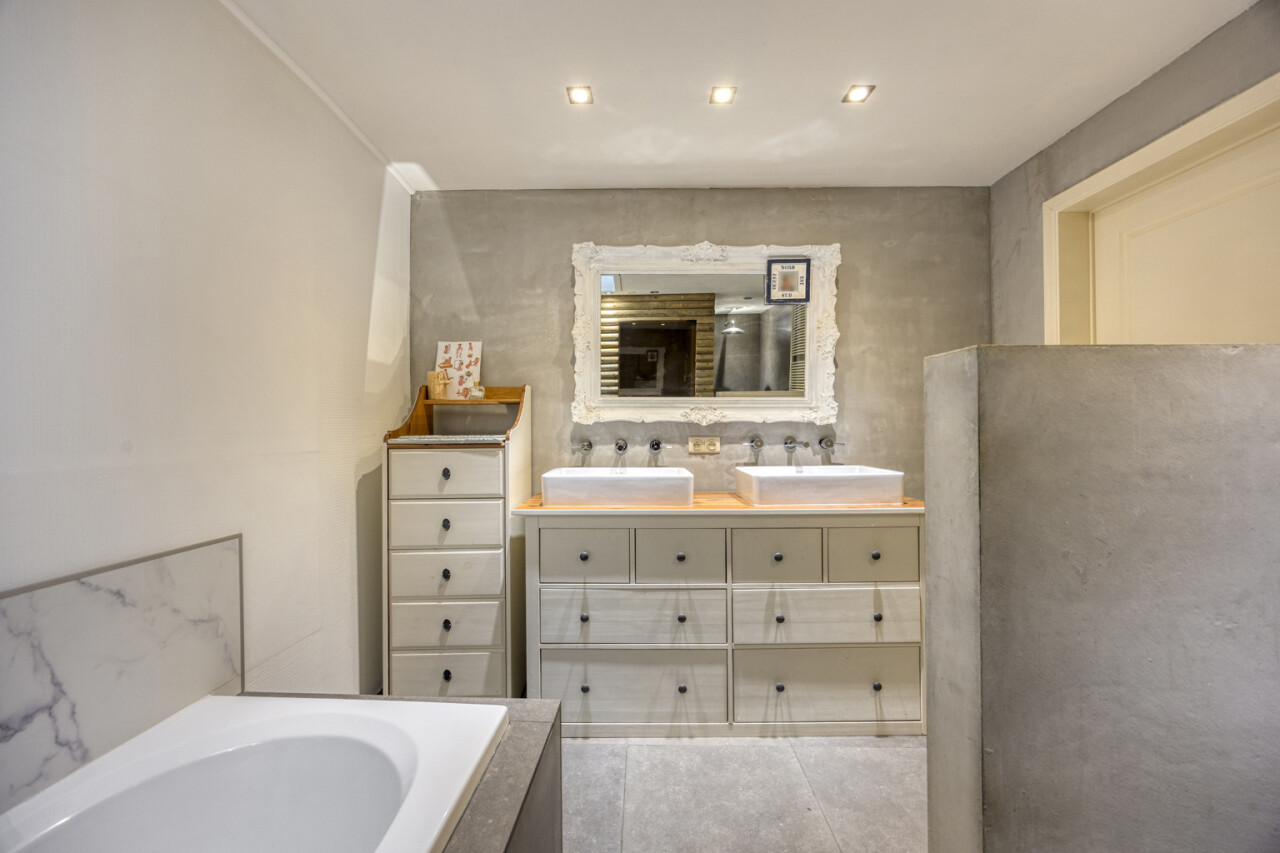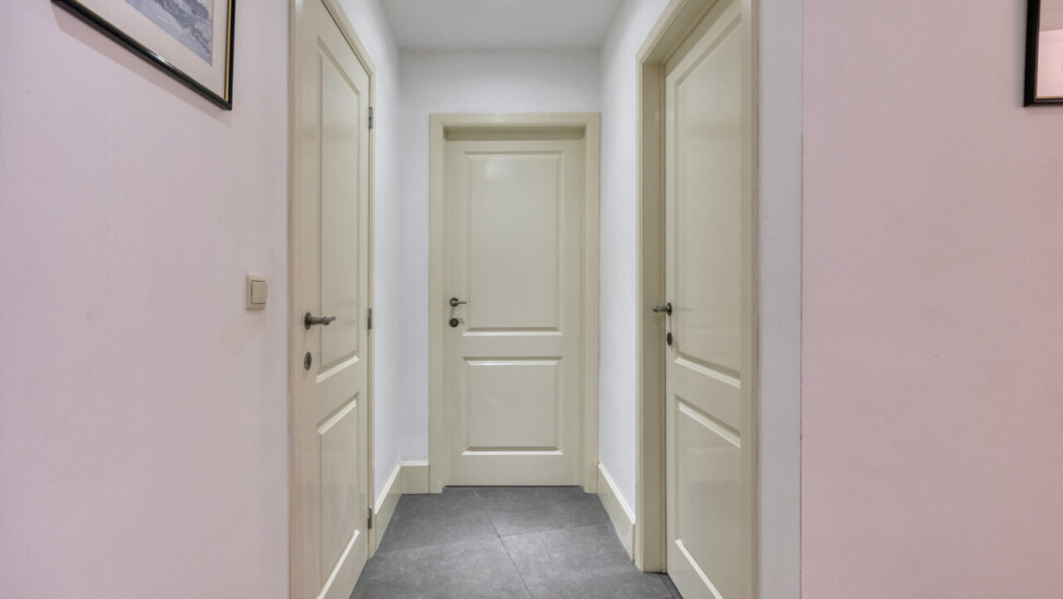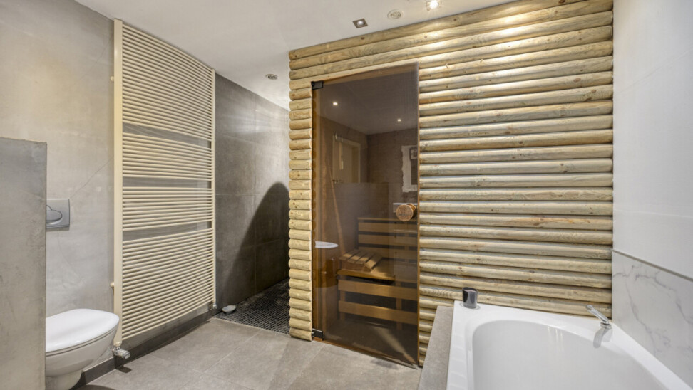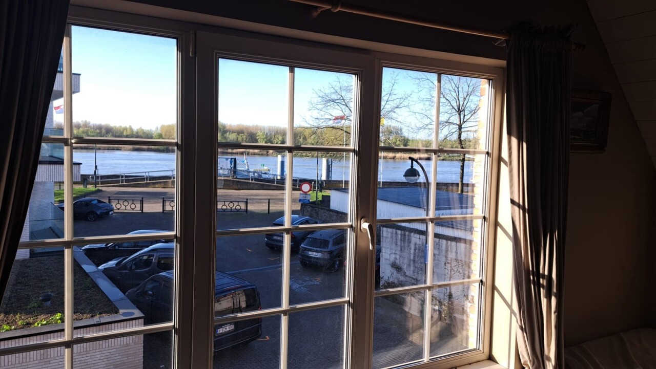 U betreedt de woning via een ruime inkomhal met aansluitend een praktische berging en kelder. Op het gelijkvloers bevindt zich een royale badkamer met sauna, ideaal voor totale ontspanning. Verder beschikt deze verdieping over twee ruime slaapkamers, beide met een mooi zicht op de Schelde. Aansluitend is er een stijlvol ingerichte dressing, functioneel ingedeeld en een duidelijke meerwaarde voor het dagelijkse comfort.