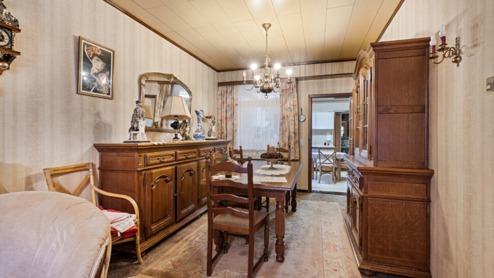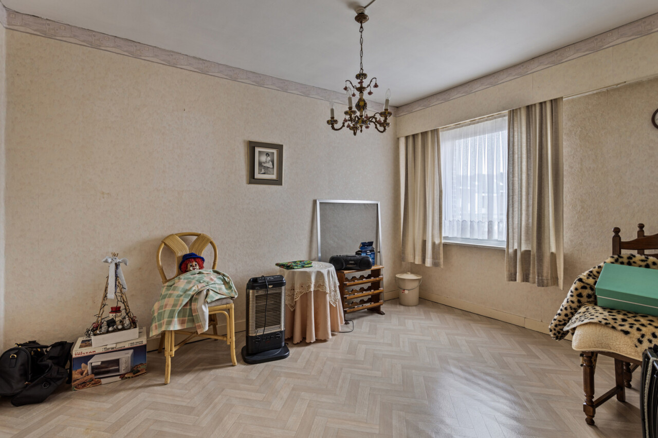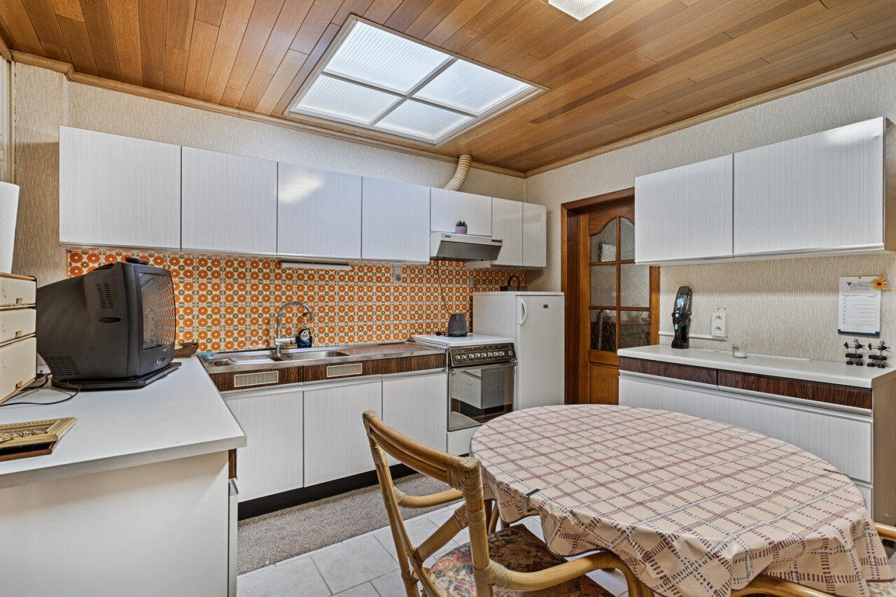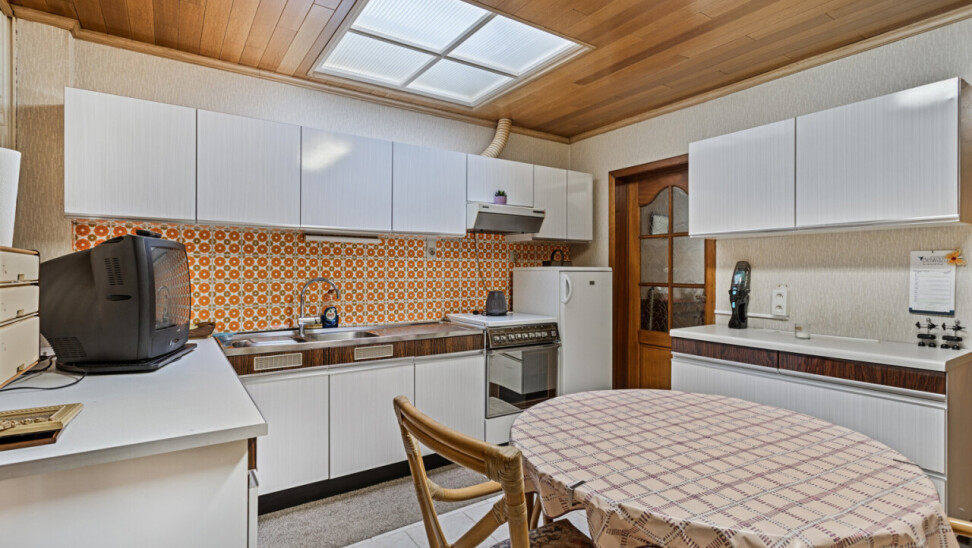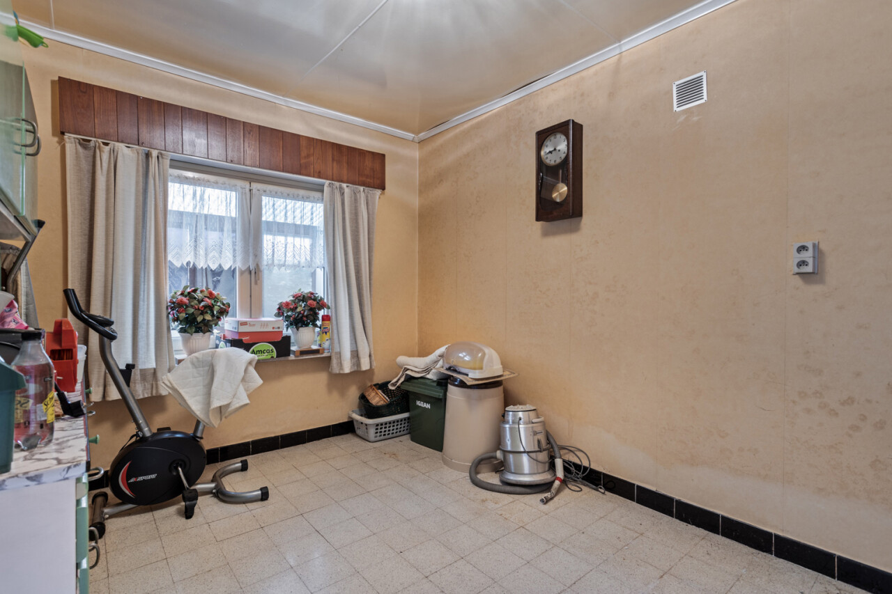 Bij binnenkomst via de inkomhal krijg je toegang tot de gezellige leefruimte en de keuken. Verder op het gelijkvloers bevinden zich nog een ruime keuken, een badkamer en een praktische bergplaats. De woning beschikt tevens over een kelder voor extra opslagruimte.