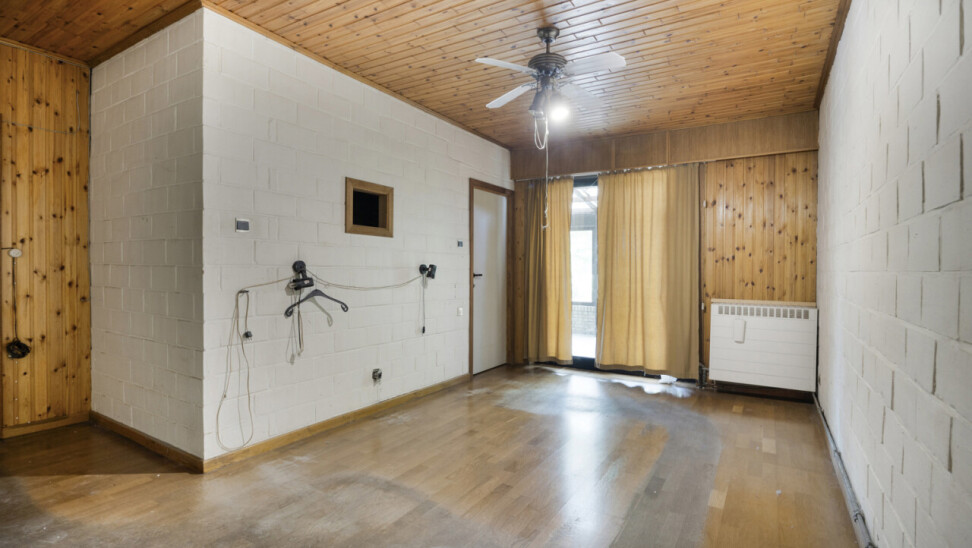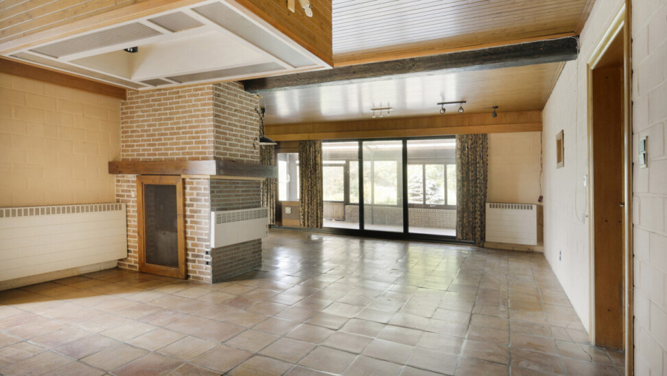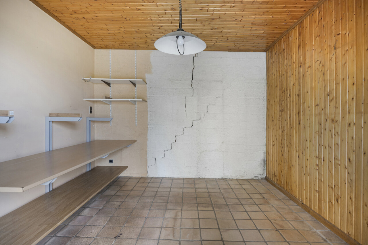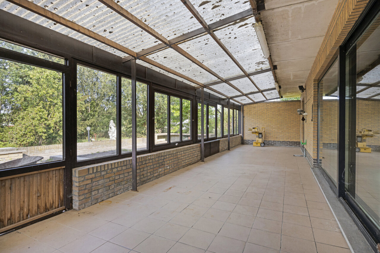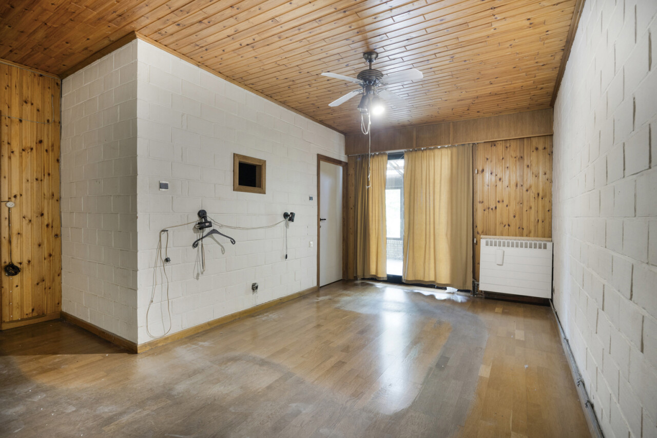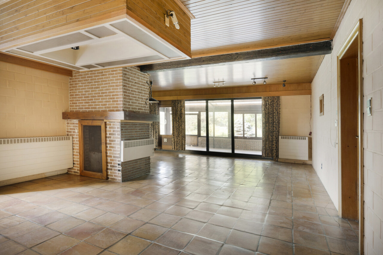 We betreden de woning via de inkomhal met toegang tot het gastentoilet en een praktische ingemaakte kast/dressing. Vervolgens komen we in de lichtrijke leefruimte met grote raampartijen die zorgen voor een aangename verbinding met de tuin en veranda. Aansluitend bevindt zich een kamer die perfect kan dienen als bureau of extra slaapkamer.