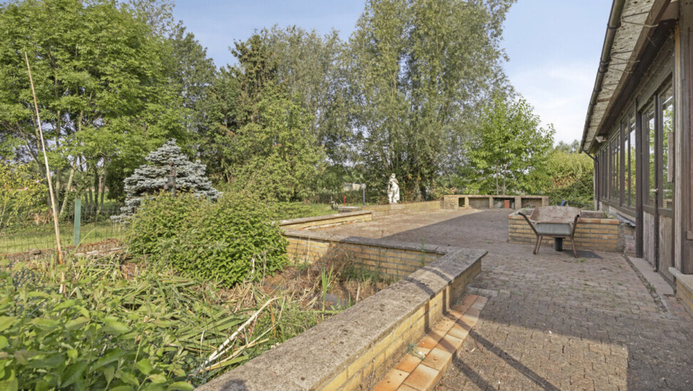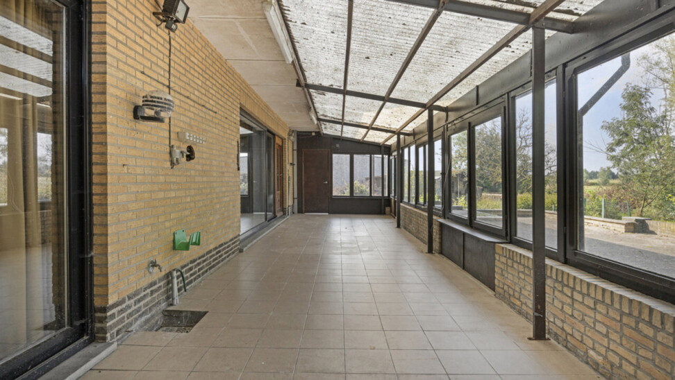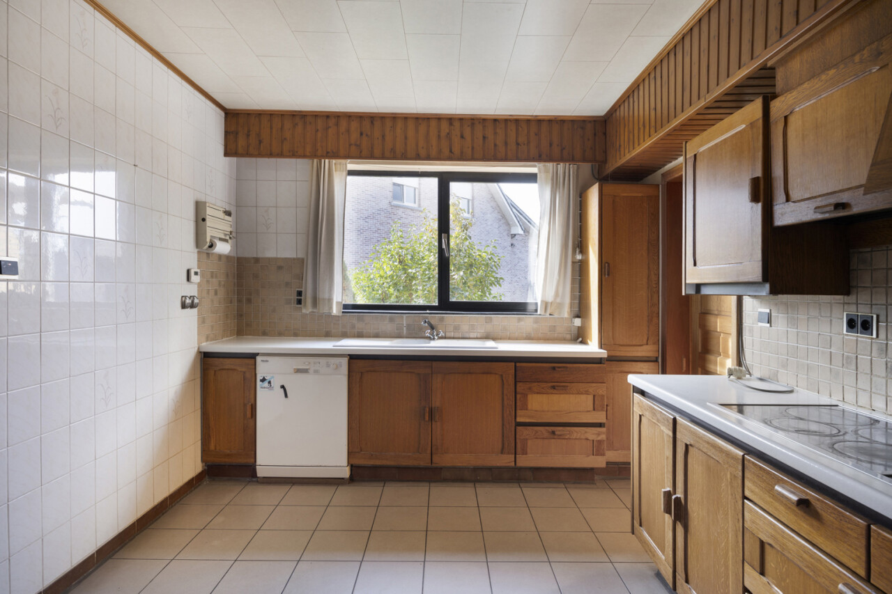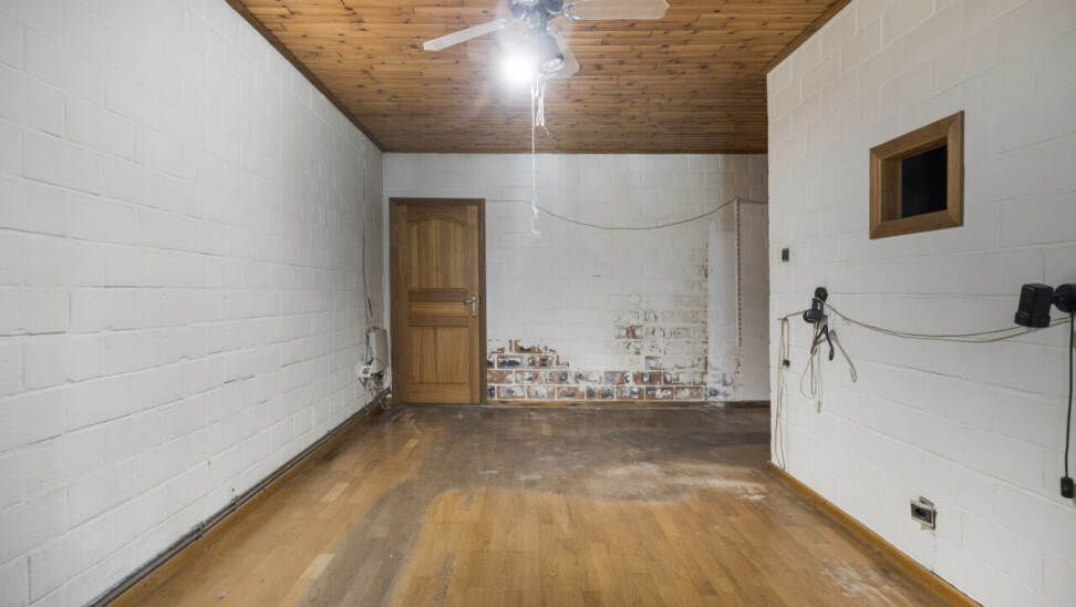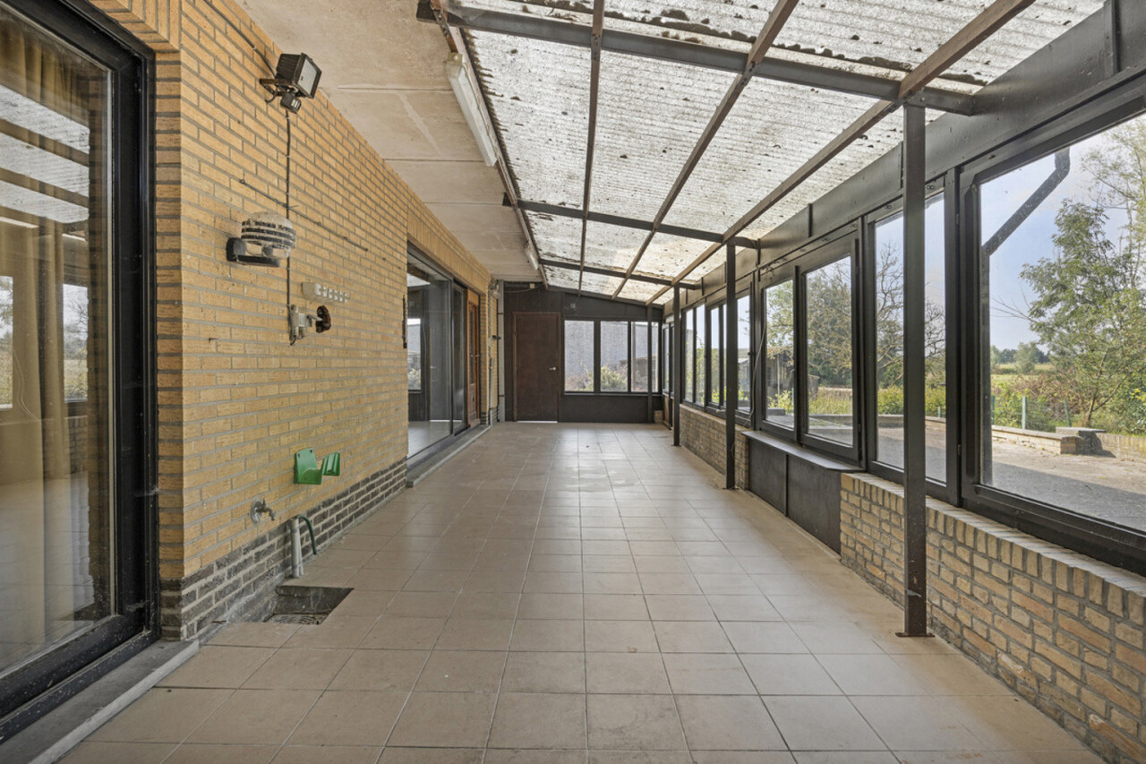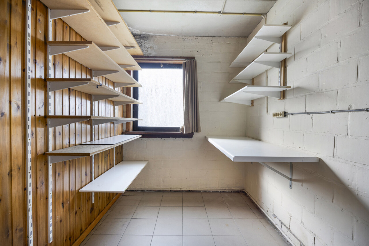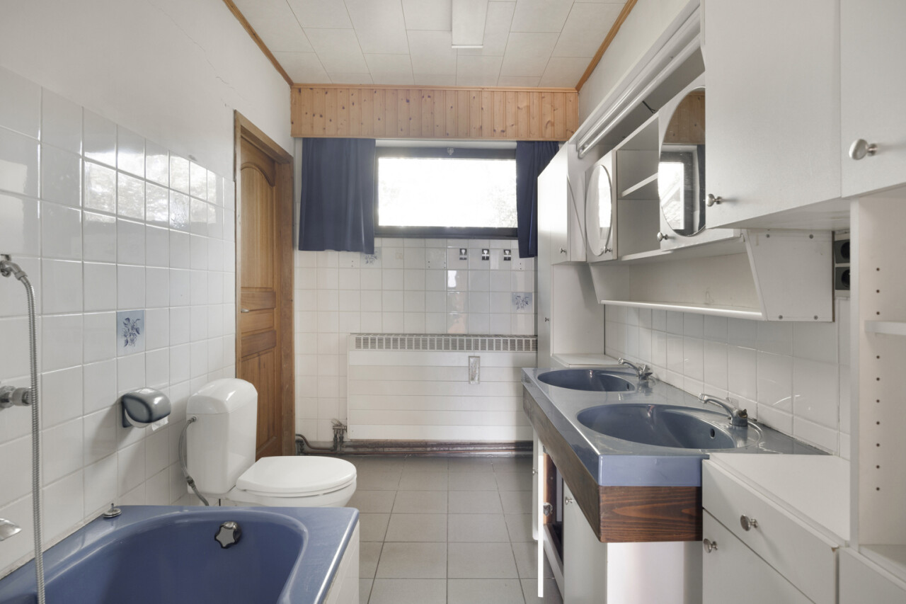 We betreden de woning via de inkomhal met toegang tot het gastentoilet en een praktische ingemaakte kast/dressing. Vervolgens komen we in de lichtrijke leefruimte met grote raampartijen die zorgen voor een aangename verbinding met de tuin en veranda. Aansluitend bevindt zich een kamer die perfect kan dienen als bureau of extra slaapkamer.