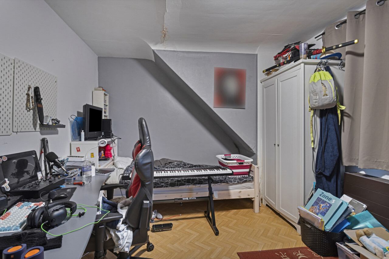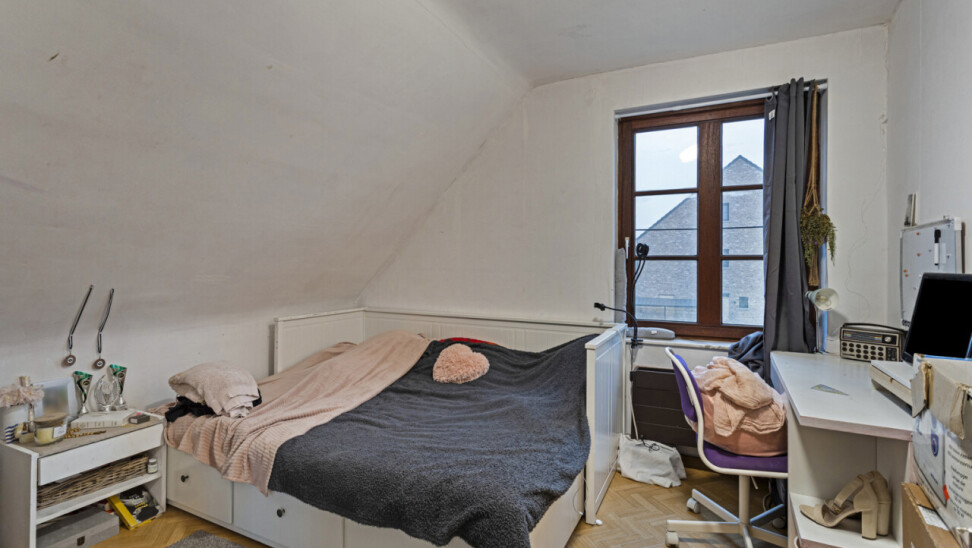Onafgewerkte zolderruimte van circa 24m² met een hoogte van 1m90 (hoogste punt) en toegankelijk via een zolderluik