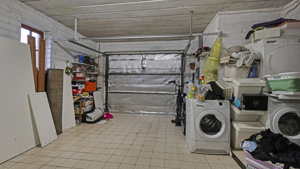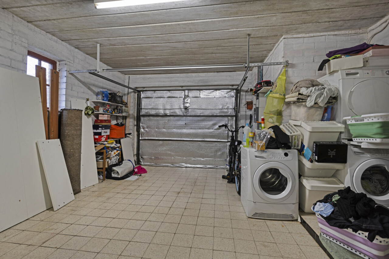 Garage: 40,7m² op tegelvloer, toegankelijk via een kantelpoort en voorzien van aansluiting wasmachine