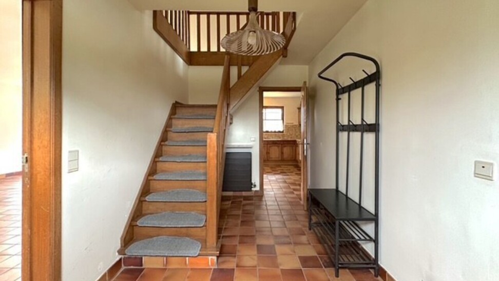 Inkomhal: 10,5m² op tegelvloer en voorzien van een houten voordeur